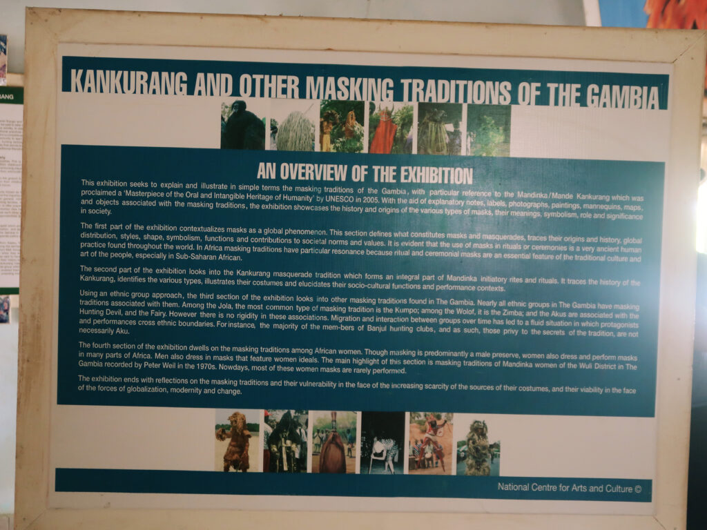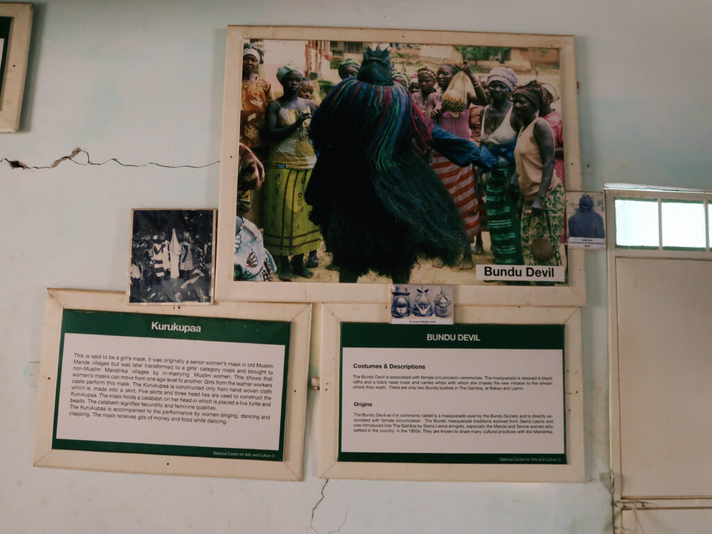 Kankurang Museum: We learned about the Kankurang Festival, which celebrates boys’ transition into adulthood. Although we missed the event by just a few days, the museum’s guide’s explanation made it come alive.