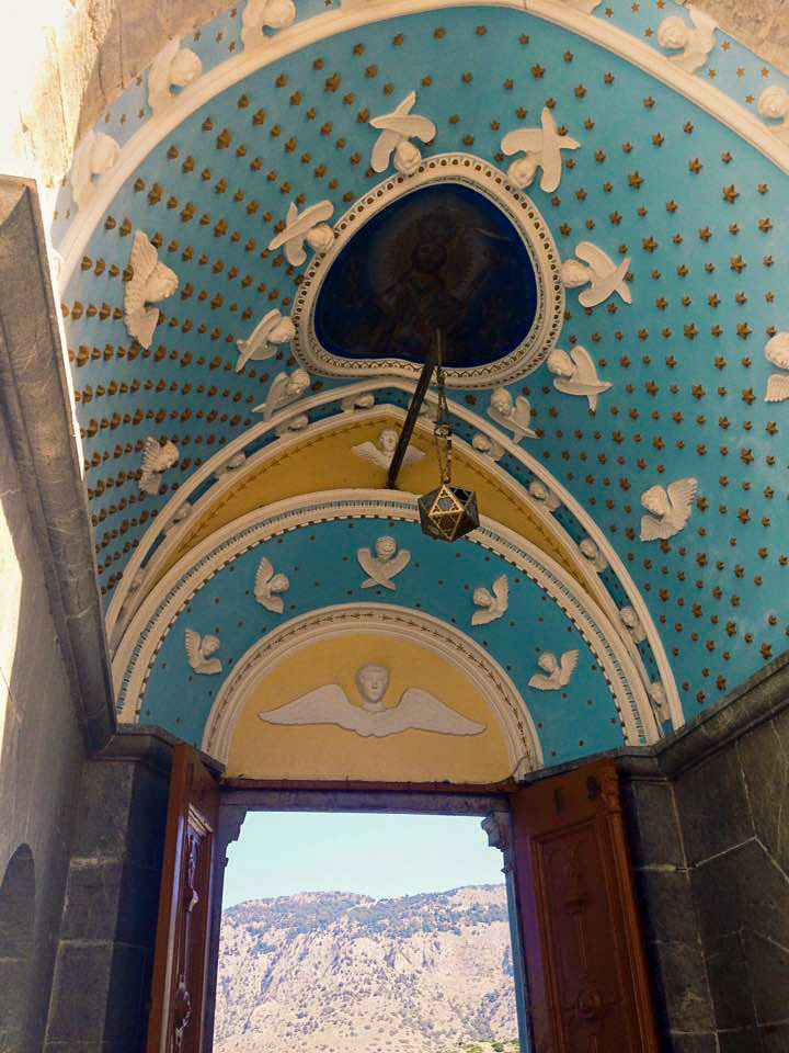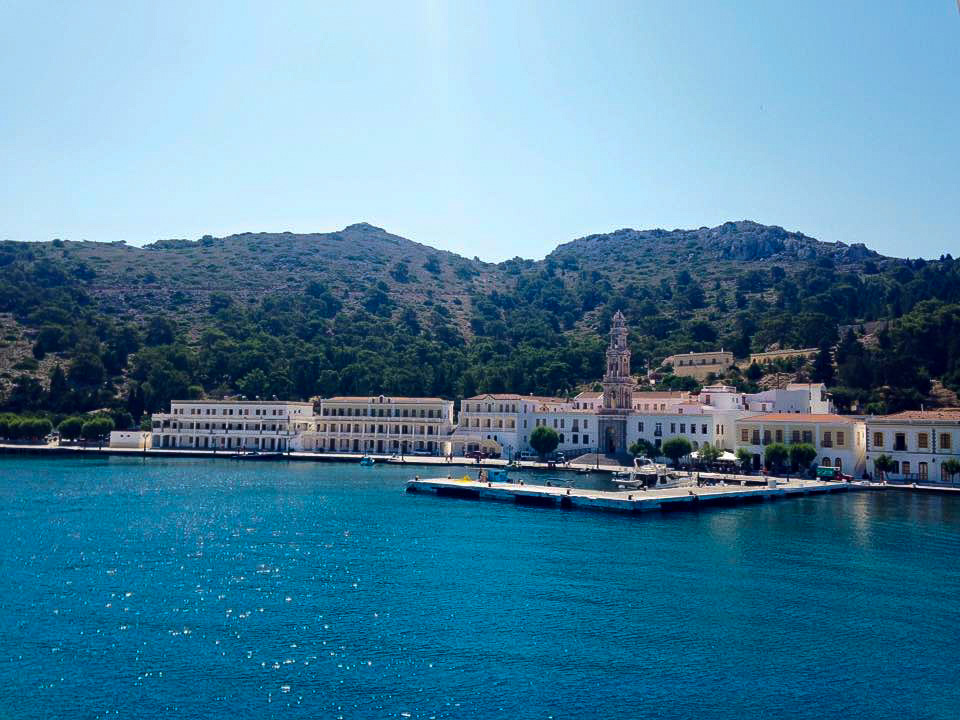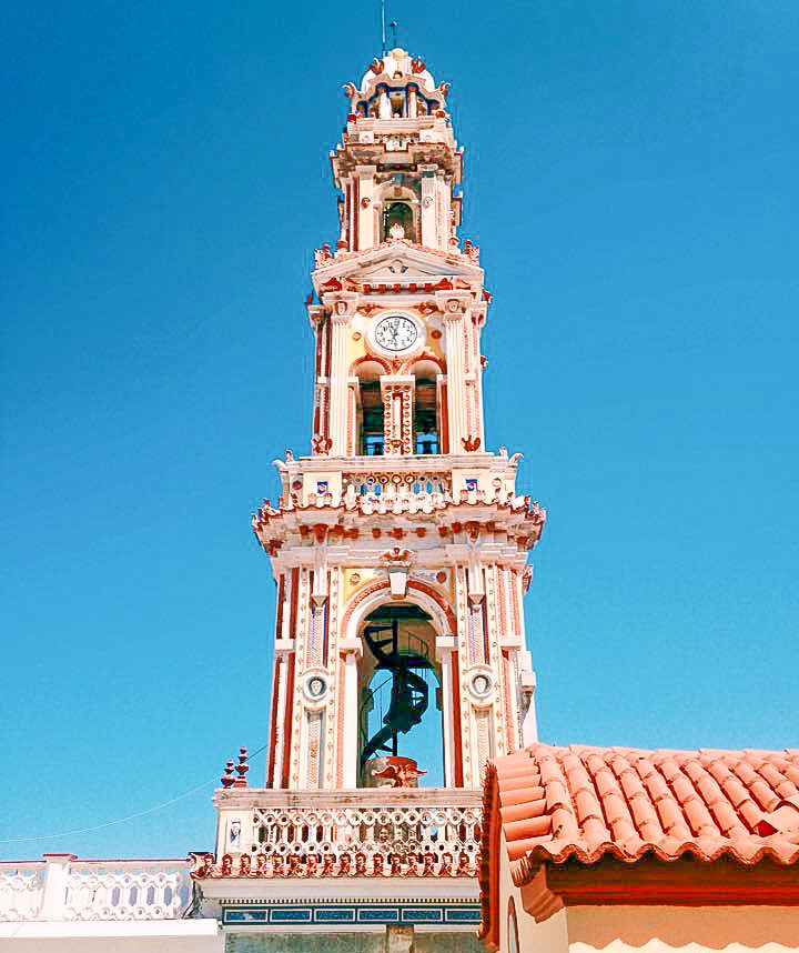 The first stop our boat made on our day trip to Symi island is to the monastery of Archangel Michael. Situated on the southwest coast and built in the 18th century, the monastery is beautiful with an unmistakable bell tower protruding from the surrounding landscape.
